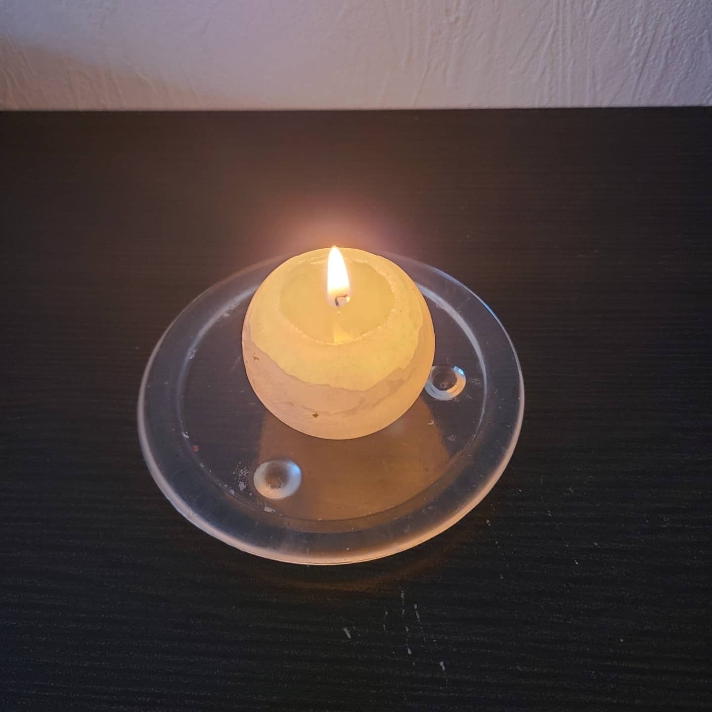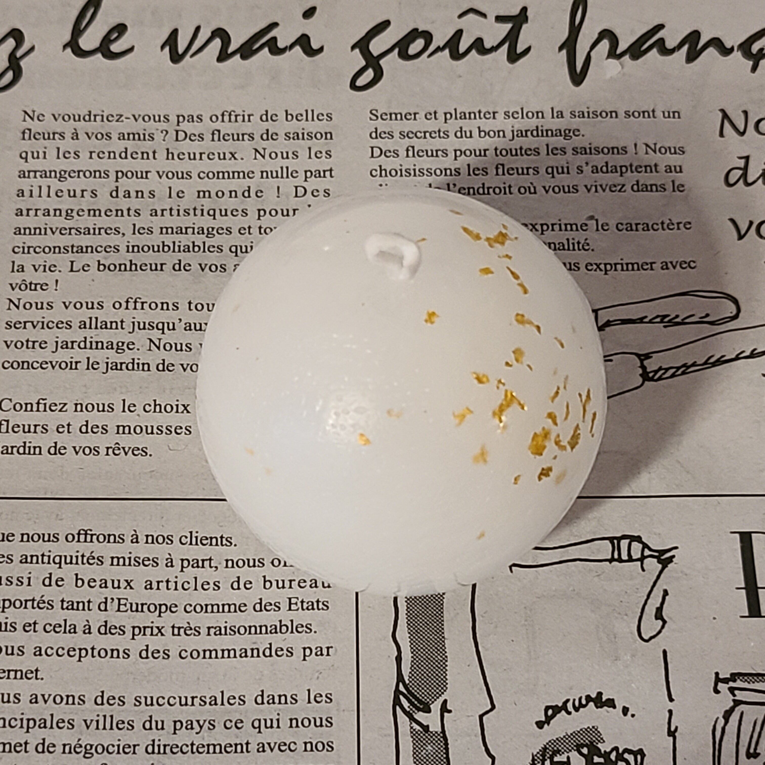 浄化キャンドルは、白地に金粉がかかっています。
